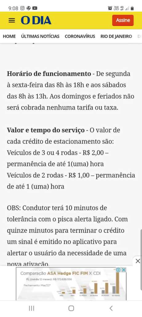 Ai que se sabe hoje 23 de abril é um feriado estadual religioso, ” Dia de São Jorge” e pelo que se sabe a cobrança do estacionamento rotativo não deveria funcionar aos feriados, mas estranhamente hoje o mesmo está sendo cobrado. Diversos moradores, comerciários e comerciantes não entenderam tal atitude. Como se vê abaixo a cobrança ao que tudo indica, salvo engano não estaria sendo correta.