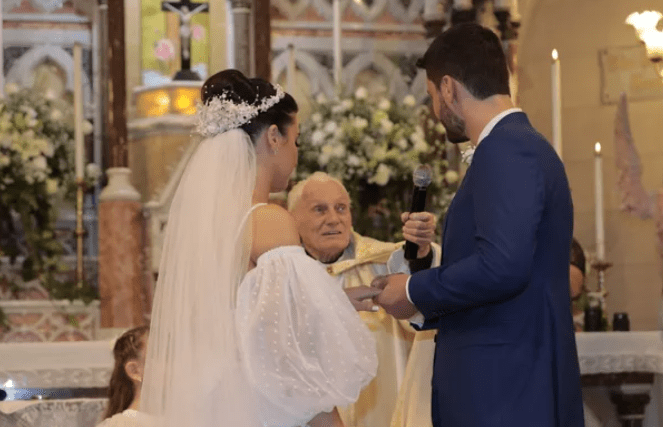 O noivo não poupou elogios ao texto que o avô preparou para sua cerimônia, contando que o religioso destacou a necessidade de fidelidade, companheirismo e amor em suas palavras para o neto e a esposa.