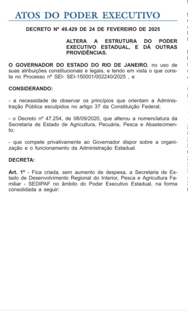 Alguns veículos de comunicação estão afirmando que o deputado Jair Bittencourt assumiu uma super secretaria no Governo do Estado do Rio de Janeiro. Em verdade o governador Cláudio Castro para “ agradar gregos e troianos” dividiu a Secretaria Estadual de Agricultura, Pesca e Abastecimento em DUAS PASTAS sem aumento de despesas, o que significa que não há dotação orçamentária pertinente para a recém-criada Secretaria de Estado de Desenvolvimento Regional do Interior, Pesca e Agricultura Familiar que passou a ser ocupada por Bittencourt. Enquanto a antiga Secretária ora desmembrada passa a se chamar Secretaria de Agricultura, Pecuária e Abastecimento e será comandada pelo irmão do deputado estadual dr Deodalto, o suplente de deputado federal dr. Flavio. A Secretaria de Bittencourt terá somente os cargos em comissão vagos da extinta Secretaria que um dia foi uma e que agora segue dividida.