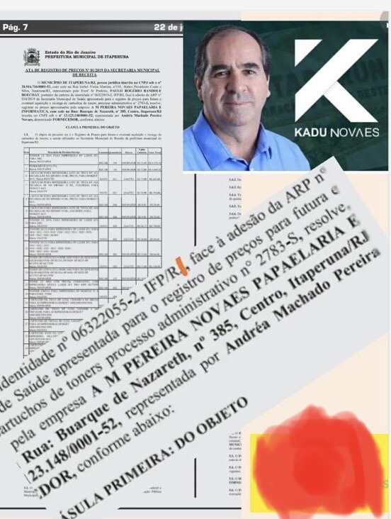 Somente em um contrato no ano de 2020 quando dr Vinícius era prefeito, Novaes vendeu mais de 128 mil reais para a Prefeitura de Itaperuna.